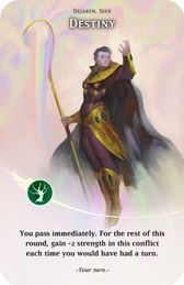 Du passt sofort. Immer wenn du an der Reihe wärst, erhältst du +2 Stärke in diesem Konflikt.