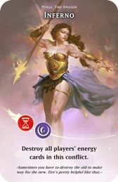 Höchste Energiekarte: Die insgesamt höchste Energiekarte aller Spieler - das kann auch deine eigene Energiekarte sein. Wenn die höchste Stärke im Konflikt mehrfach auftritt, werden alle höchsten Karten getroffen - auch spielerübergreifend. Verdeckte Karten können davon nicht getroffen werden.