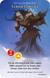 Put an Aftershock into your supply. Other players can no longer play energy cards into this conflict.